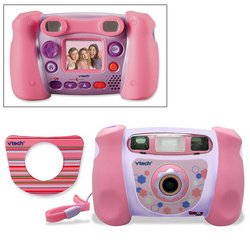 Fun times are caught with the new Pink Kidizoom Digital Camera!Kids will have a blast taking candid pictures with their Vtech KidizoomCamera. The Kidizoom Kids camera includes a connector cableto plug in and watch a picture slide show, or view the pictures andmovies on a TV or a PC. It also features fun photo editing options thatallow kids to distort pictures or add silly frames. The KidizoomCamera comes with three games to keep the fun going all day longand changeable faceplates for customization! Its easy and fast to juststart clicking away with the Kidizoom Camera! This is a great kidscamera. Order your child the Vtech Kidizoom Camera today.If you have a child that wants to take pictures just like mom anddad, this camera will stand up to the rigors of use by kids. The camhas enough onboard memory for about 200 still shots and the camerashoots video and plays games too.Power for the camera comes from four AA batteries. Kids can playthree games on the camera LCD as well including tic-tac-toe, memorymatching game, and a rotation puzzle that uses stock images and theimages taken with the camera. TheVtech Kidizoom Kids Camera will easily be your kid's toy of choice.